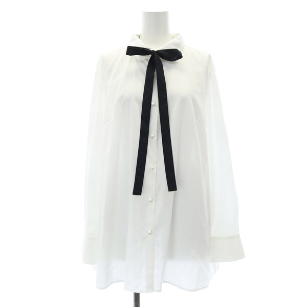 パールモチーフボタンボウタイブラウス