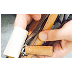 持ち手やファスナーにたまったホコリは、 ガムテープにくっつけたり、 はたきではたいたりすると取れます。